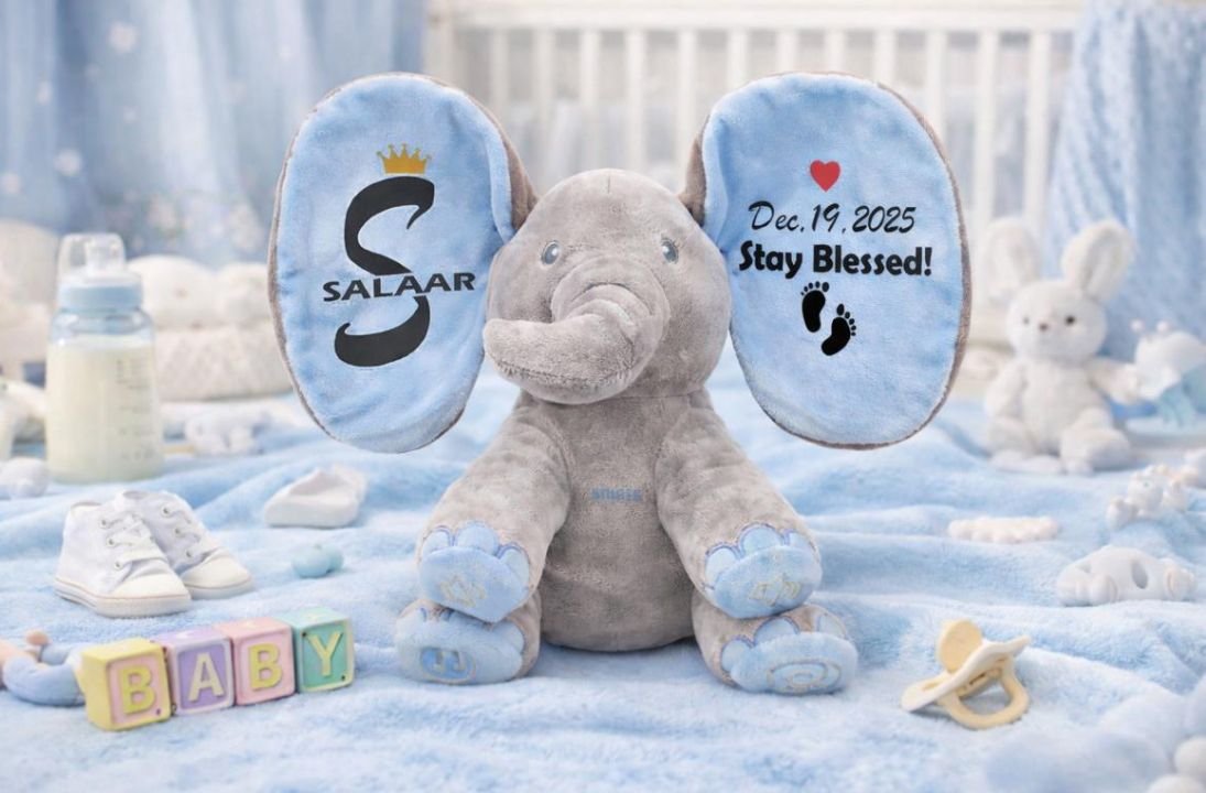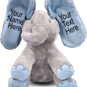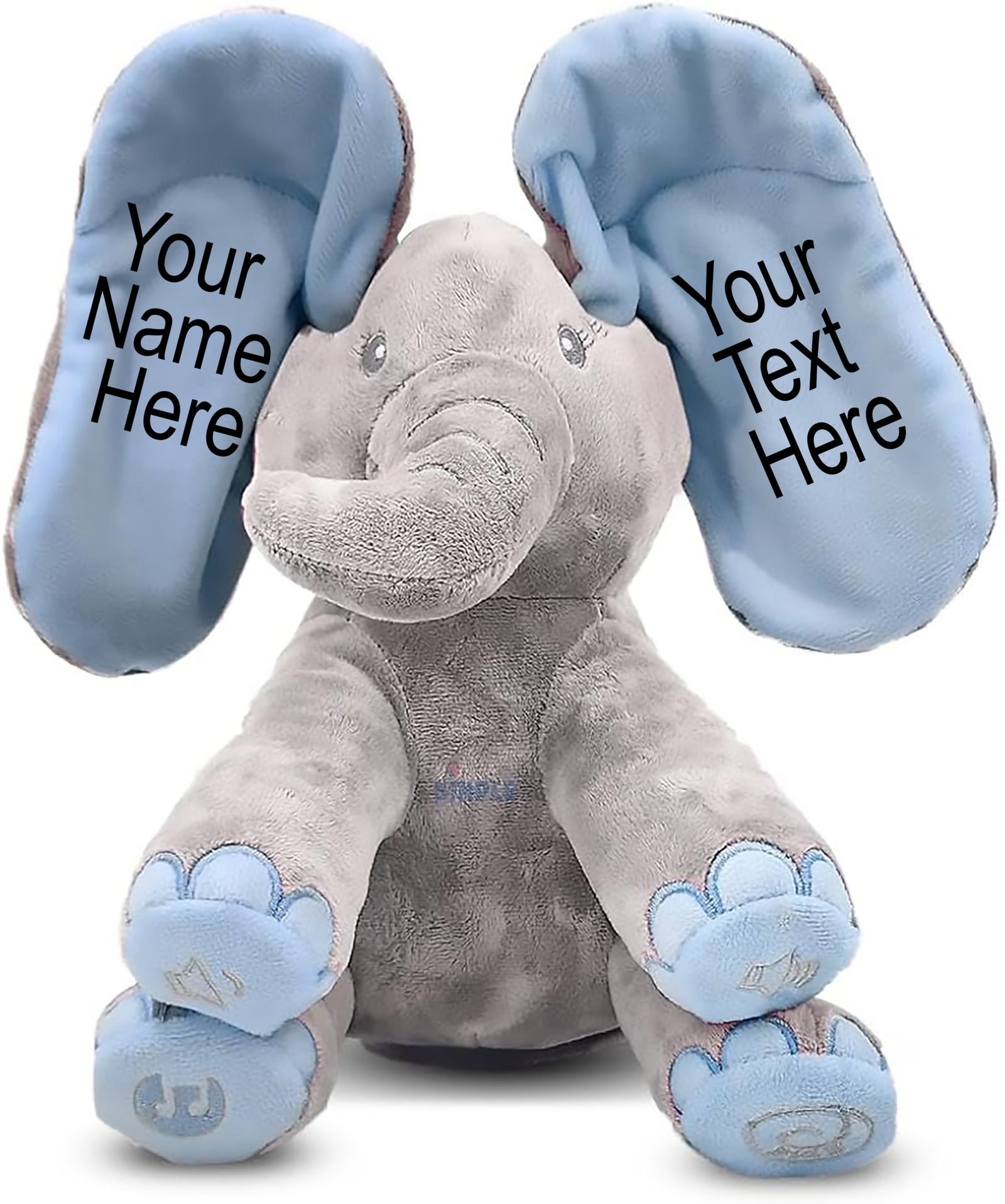 Celebrate a precious new arrival with our Personalized Elephant Plush, a soft and cuddly keepsake designed to capture lifeâs sweetest moments. This adorable elephant features custom text on both ears and is available in two beautiful color options: Blue or Pink, making it perfect for baby boys or girls.