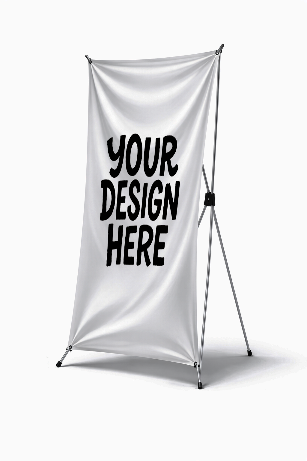 Custom X banner stand designed for indoor advertising, retail displays, and events. Lightweight, portable, and easy to set up with professional printed graphics.